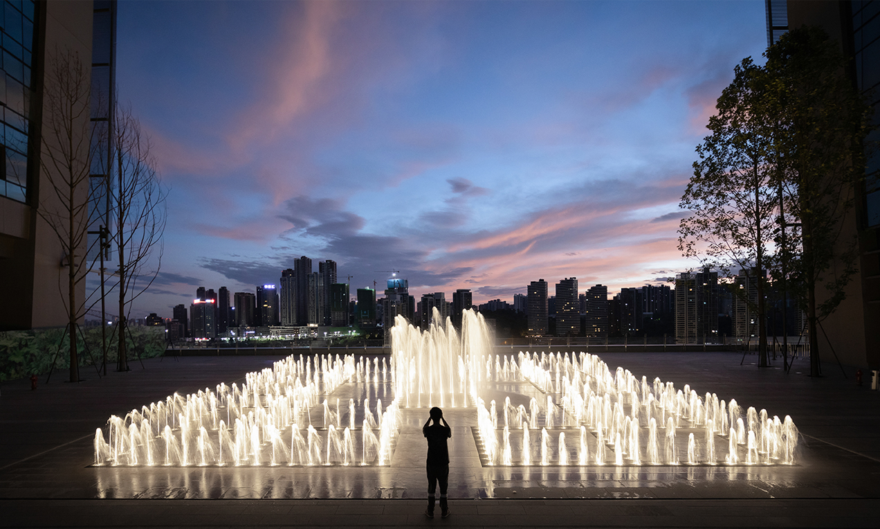 水本無形,它的物理特性讓它能輕易地跟隨容器而呈現(xiàn)不同的面貌。獨特的延展性使得水能呈現(xiàn)無以計數(shù)的不同效果。燈光的布置,介質(zhì)的紋理,顏色和動態(tài)都能給水帶來無窮的變化。